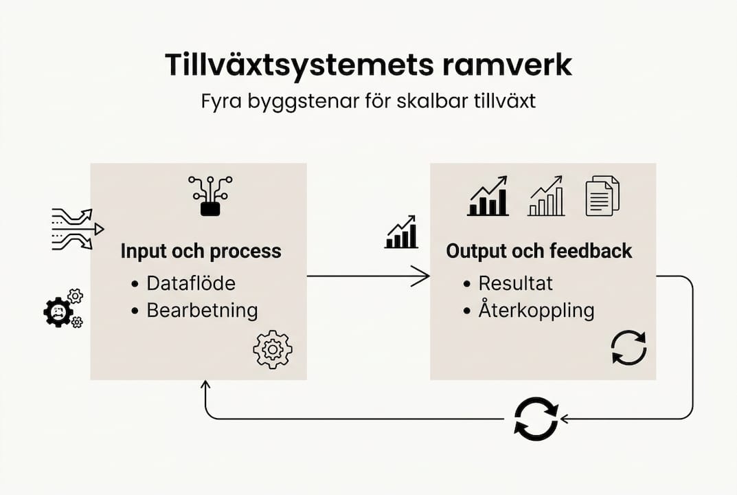 De flesta tillväxtinitiativ stannar av vid en viss skala, inte för att idéerna är dåliga, utan för att de saknar systematik. Utan strukturerade processer blir varje kvartal ett nytt experiment, och resultaten beror mer på enskilda individer än på organisationens förmåga. Tillväxtsystem byggs genom strukturerade processer för marknadsföring, försäljning och leverans som skalar utan proportionell kostnadsökning. Den här guiden ger dig en konkret steg-för-steg-metod och de insikter du behöver för att bygga ett tillväxtsystem som faktiskt håller, oavsett om du verkar inom SaaS, tech eller e-handel.